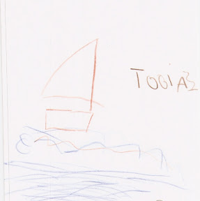 Y para coronarla, nos dejo un dibujo a cada uno... No se como se habrá enterado que me gustan los barcos!!!